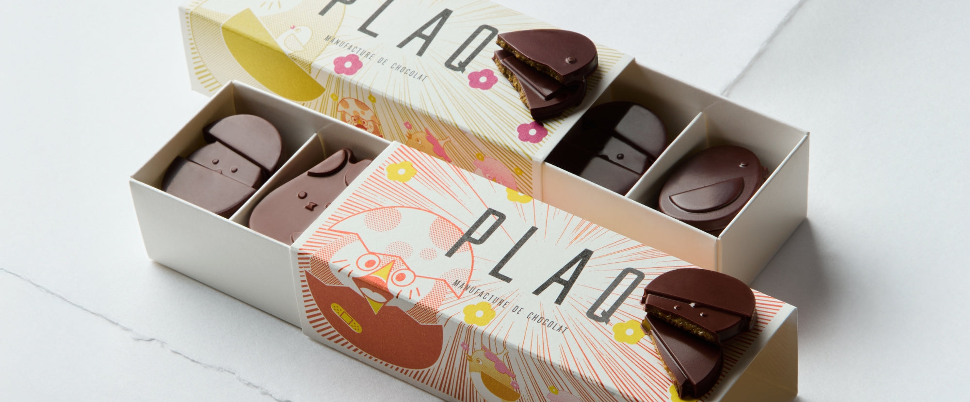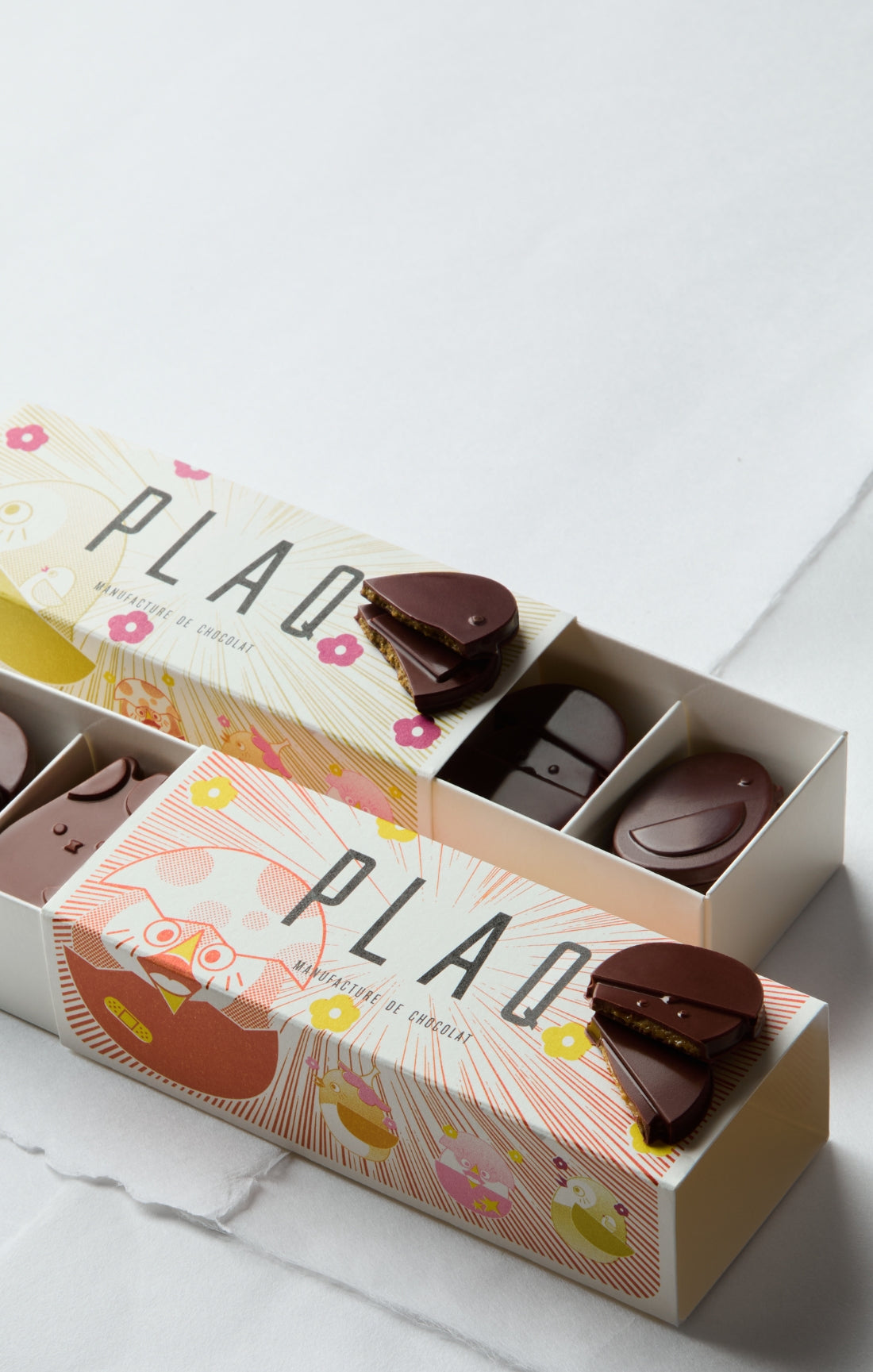 "Plaq est ce qui se fait de mieux en matière de chocolat à Paris actuellement. Des fèves rares, pas de beurre de cacao donc léger, peu de sucre (blond et bio), aucun additif. Un goût pur et unique."