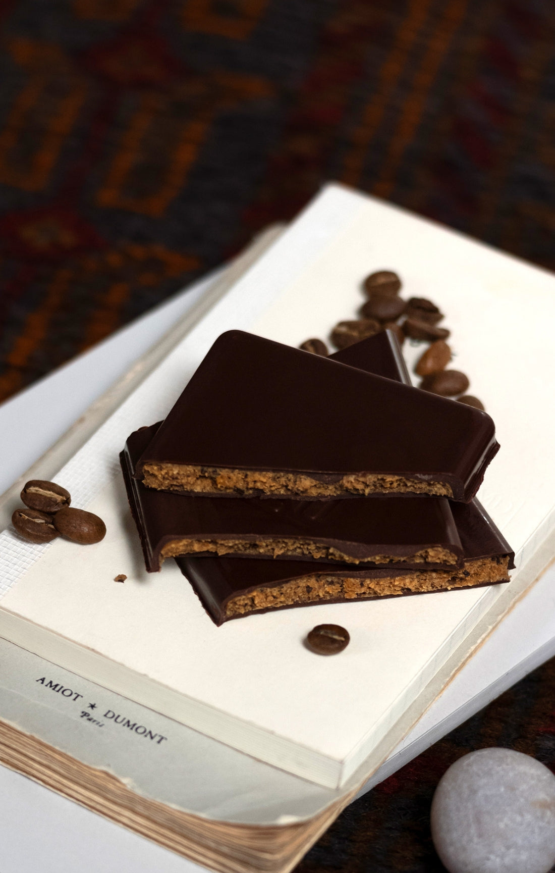 "Plaq est ce qui se fait de mieux en matière de chocolat à Paris actuellement. Des fèves rares, pas de beurre de cacao donc léger, peu de sucre (blond et bio), aucun additif. Un goût pur et unique."