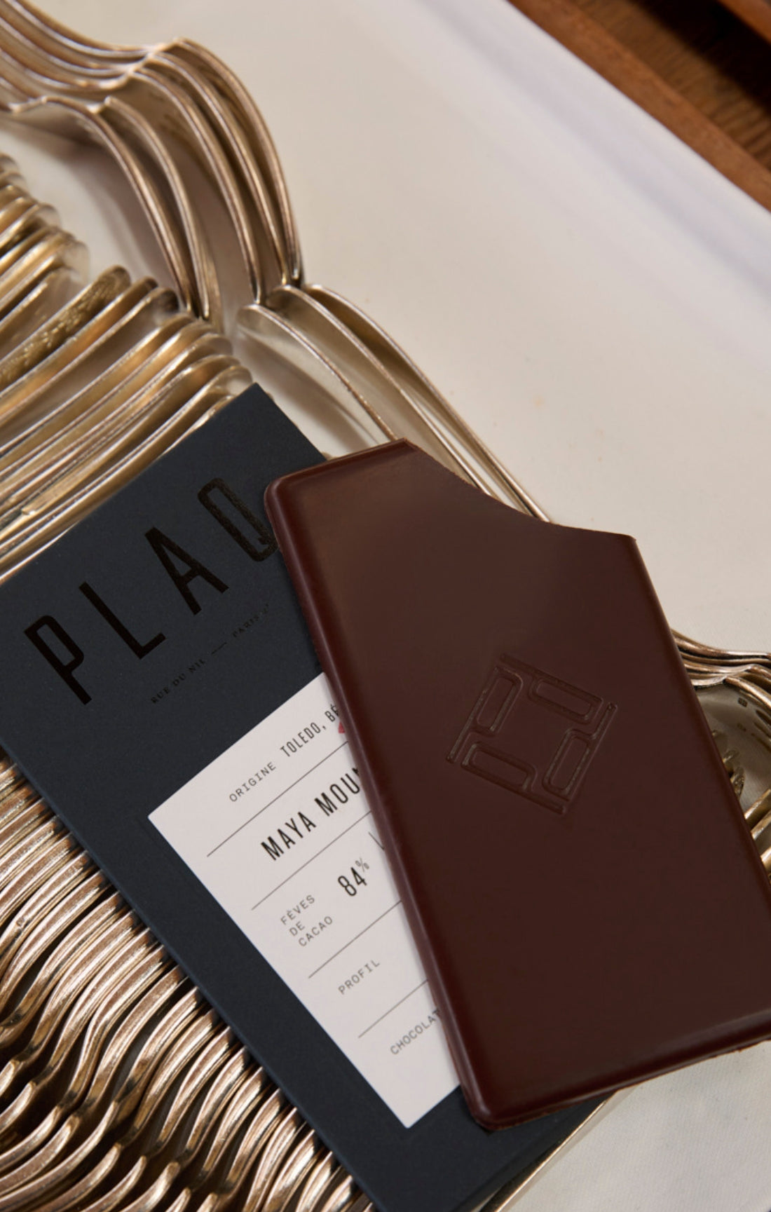 "Plaq est ce qui se fait de mieux en matière de chocolat à Paris actuellement. Des fèves rares, pas de beurre de cacao donc léger, peu de sucre (blond et bio), aucun additif. Un goût pur et unique."