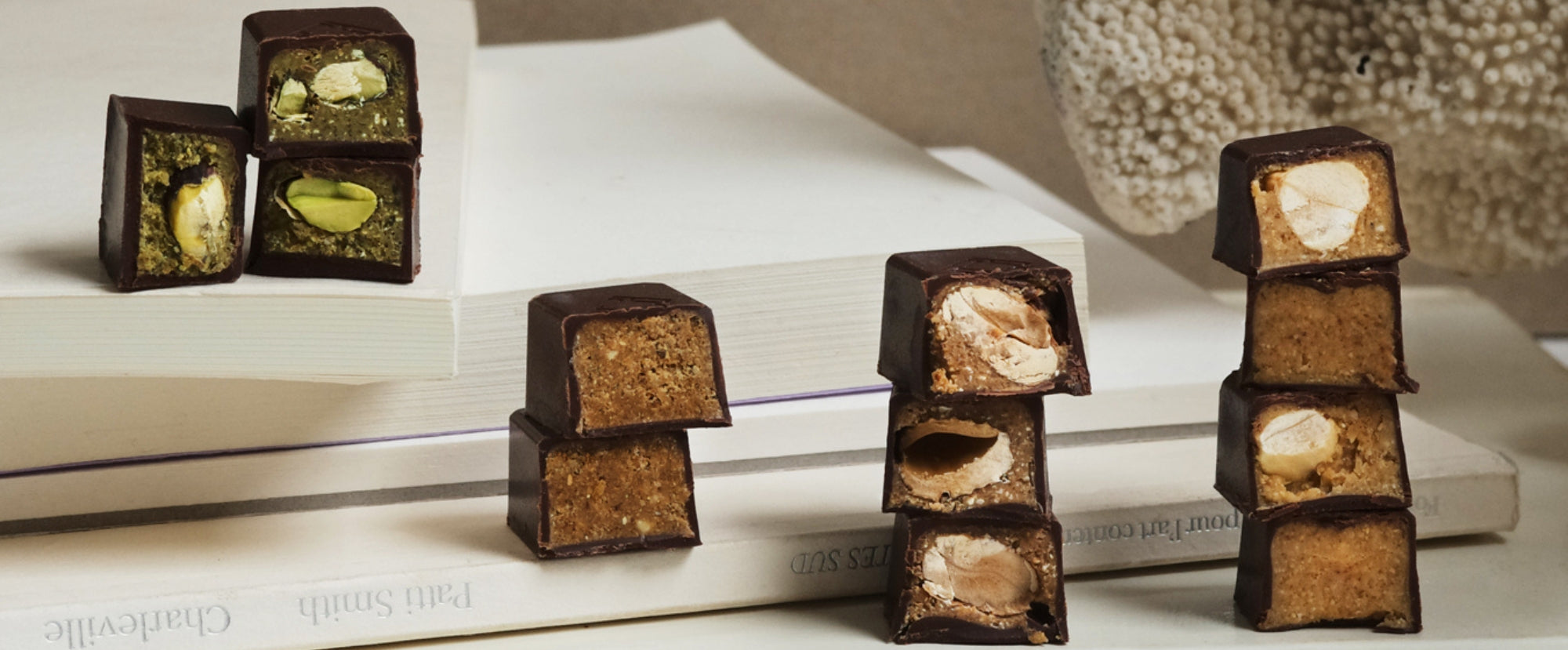 Nous goûtons et sélectionnons parmi les meilleures et les plus rares fèves de cacao. Toutes venant de cacaoyers cultivés en agroforesterie. Nous les transformons lentement en chocolat dans notre manufacture transparente au cœur de Paris. Nous maîtrisons toutes les étapes de fabrication, de la fève à la bouche. Un travail artisanal avec l'obsession du goût, pour créer un chocolat Pur et Nu.