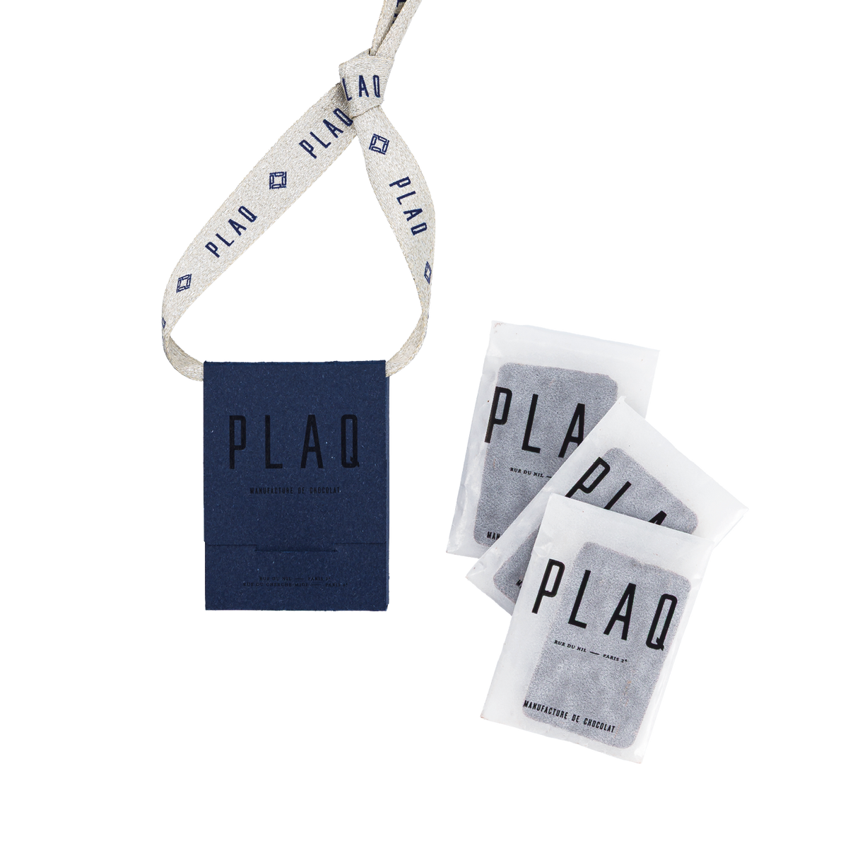 The 3 individually wrapped nano Plaqs are slipped into a midnight blue case.