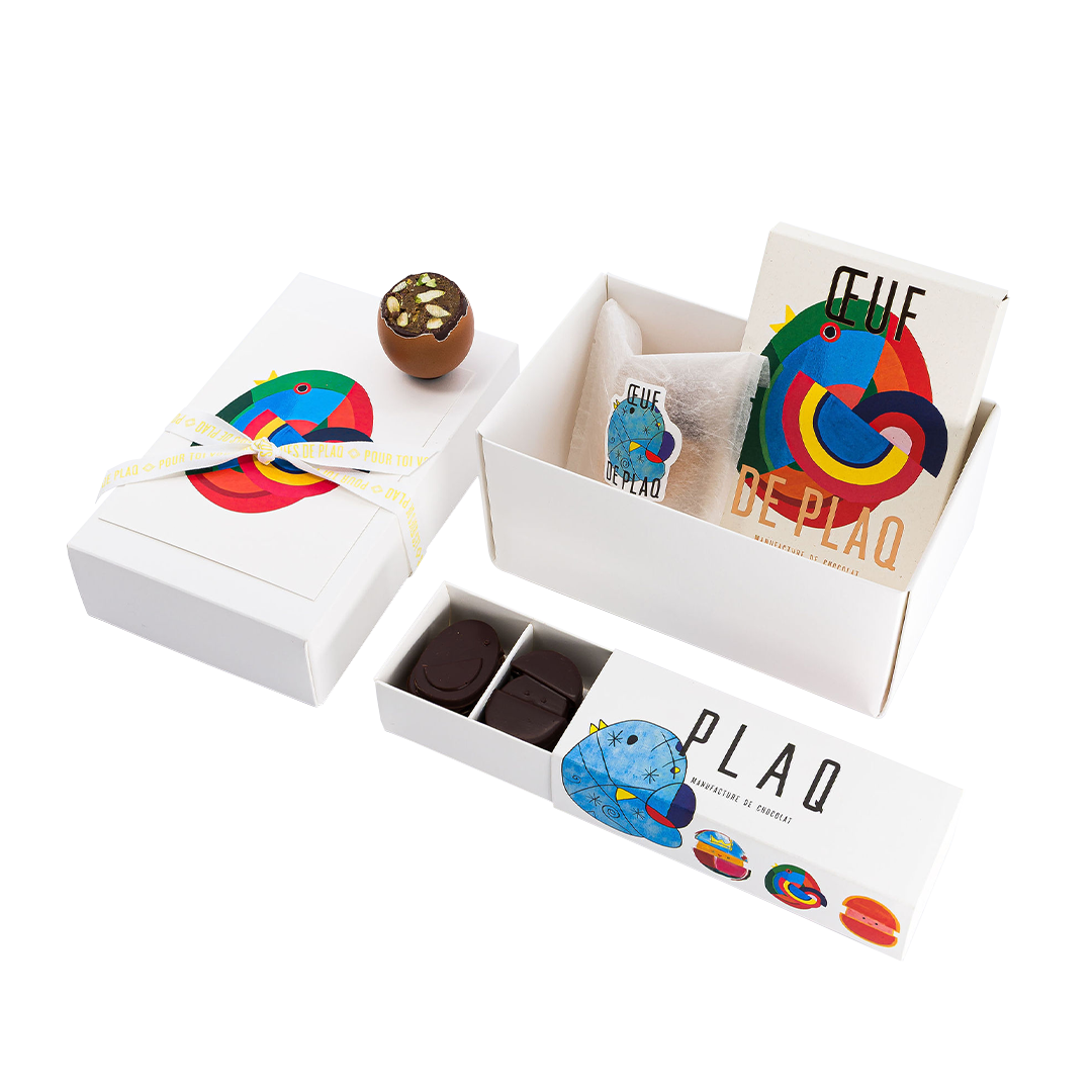 - Boîte 24 Nano Œufs de PLAQ Mix Pur noir praliné noisettes et pistaches