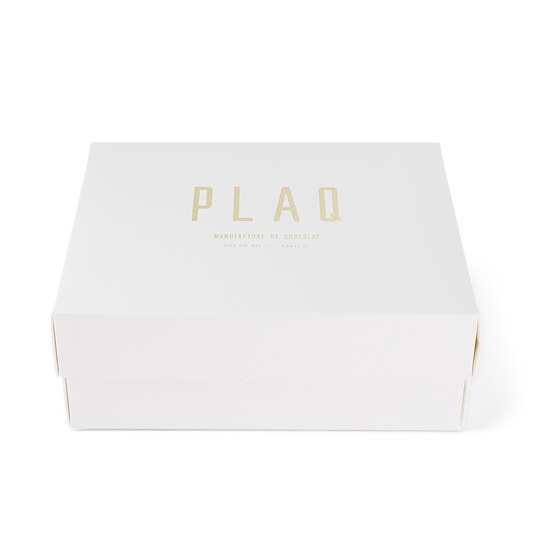 Deux tailles de coffrets blanc crème, à la ligne pure. Idéal pour offrir les PLAQ et à côté de la PLAQ incontournables.