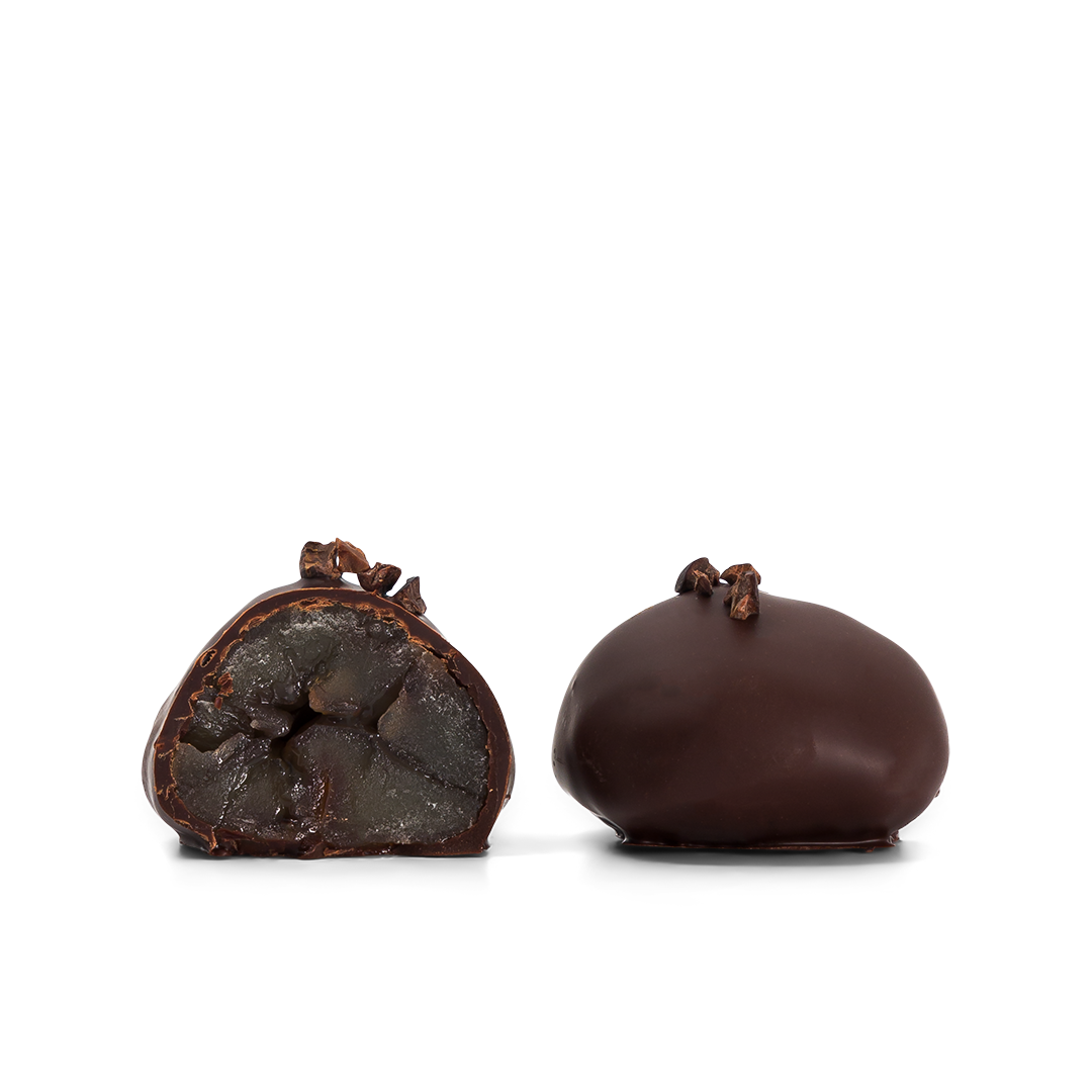 Pour faire ces marrons nous utilisons le chocolat Pur Noir Maya Mountain 84%. Pour connaitre l'histoire de ce cacao et les notes de ce chocolat vous pouvez vous rendre sur la fiche produit de la PLAQ Chocolat Pur Noir Maya Mountain 84%. À trouver dans la section TOUTES LES PLAQ ou PUR NOIR.
